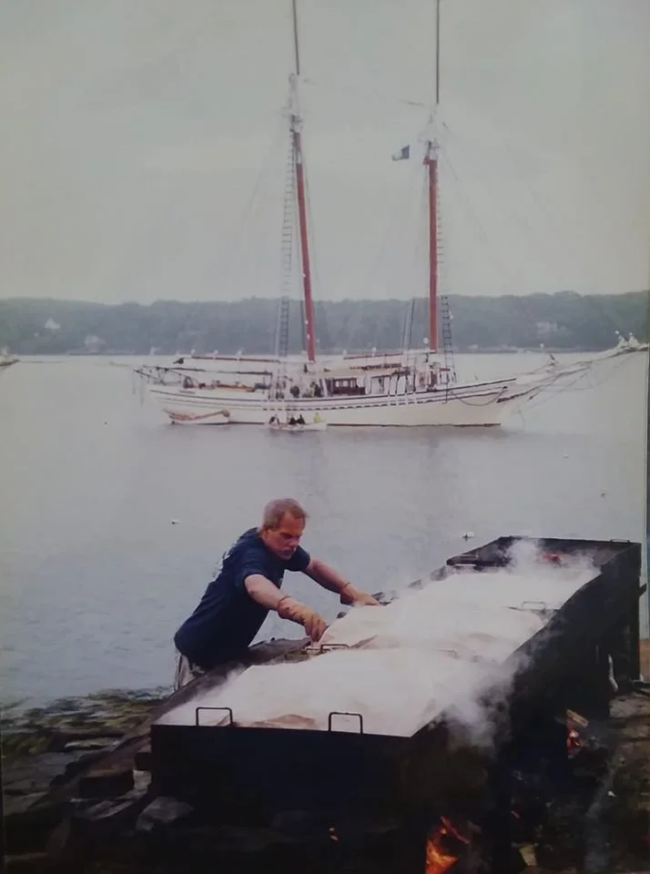 At the sound of the first bell please have a seat and chowder will be served to you. At the sound of the second bell and air-horn, you may proceed to the bake area where your meal will be served.